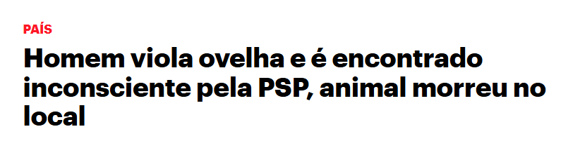 Em "Assim falava Zaratustra", Nietzsche escreveu "“Há sempre alguma loucura no amor. Mas há sempre um pouco de razão na loucura." Um século depois, quando achava que já nada me podia surpreender, encontro esta notícia na Sic Notícias. Um homem decidiu abusar de uma ovelha. E a situação correu tão mal que encontraram um animal morto e o outro animal inconsciente e de calças para baixo. Fico a pensar que cada vez que acho que as coisas não podem ser mais loucas, o mundo (...)